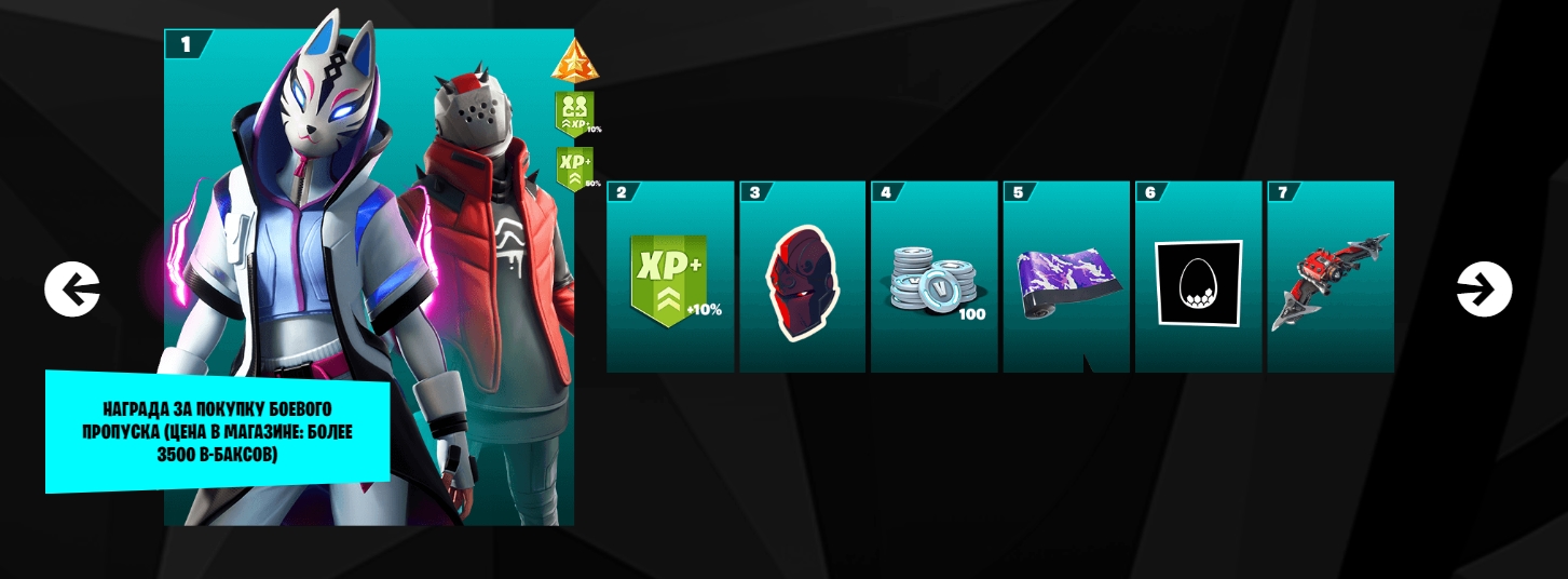 Боевой пропуск 10 сезона уже доступен к покупке за 950 В-баксов. Самая главная награда доступна после 100 уровня и она точно порадует игроков. На первом уровне все как обычно – выдается новый скин, новые стили и испытания.