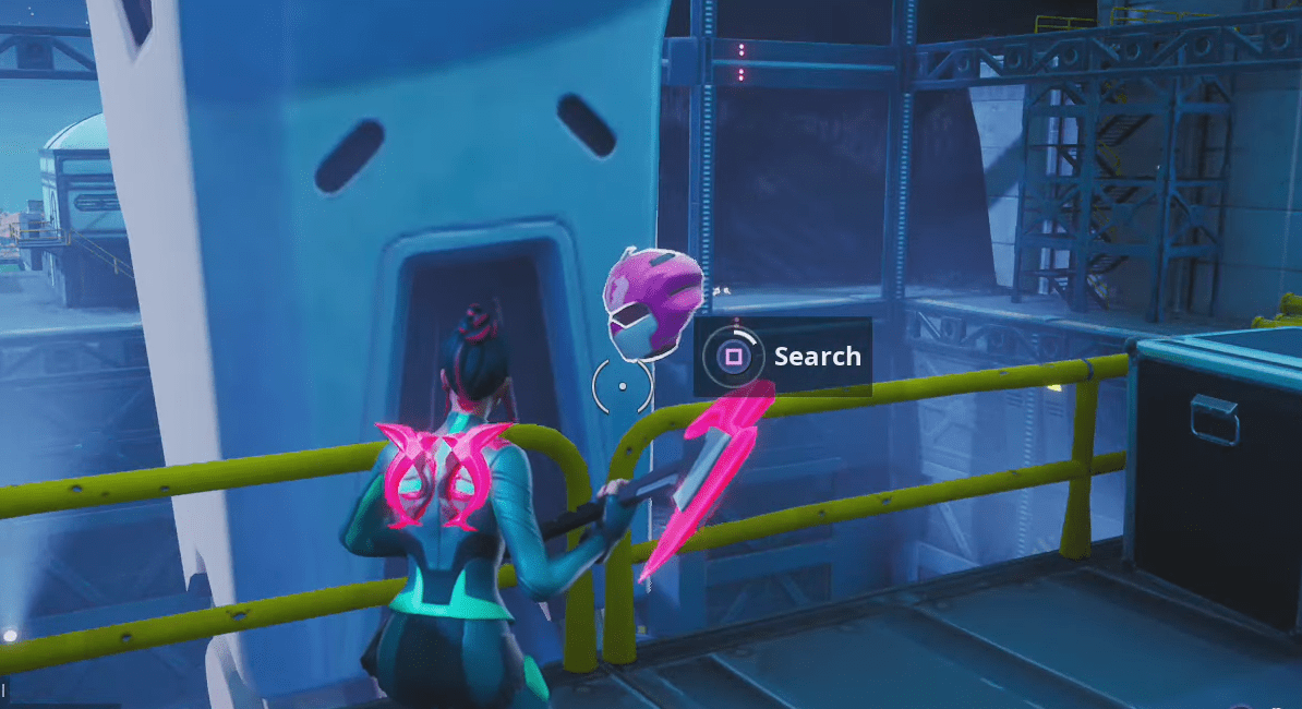 Маску можно отыскать на 3-м этаже севернее стойки с роботом. Она лежит около желтых перегородок.