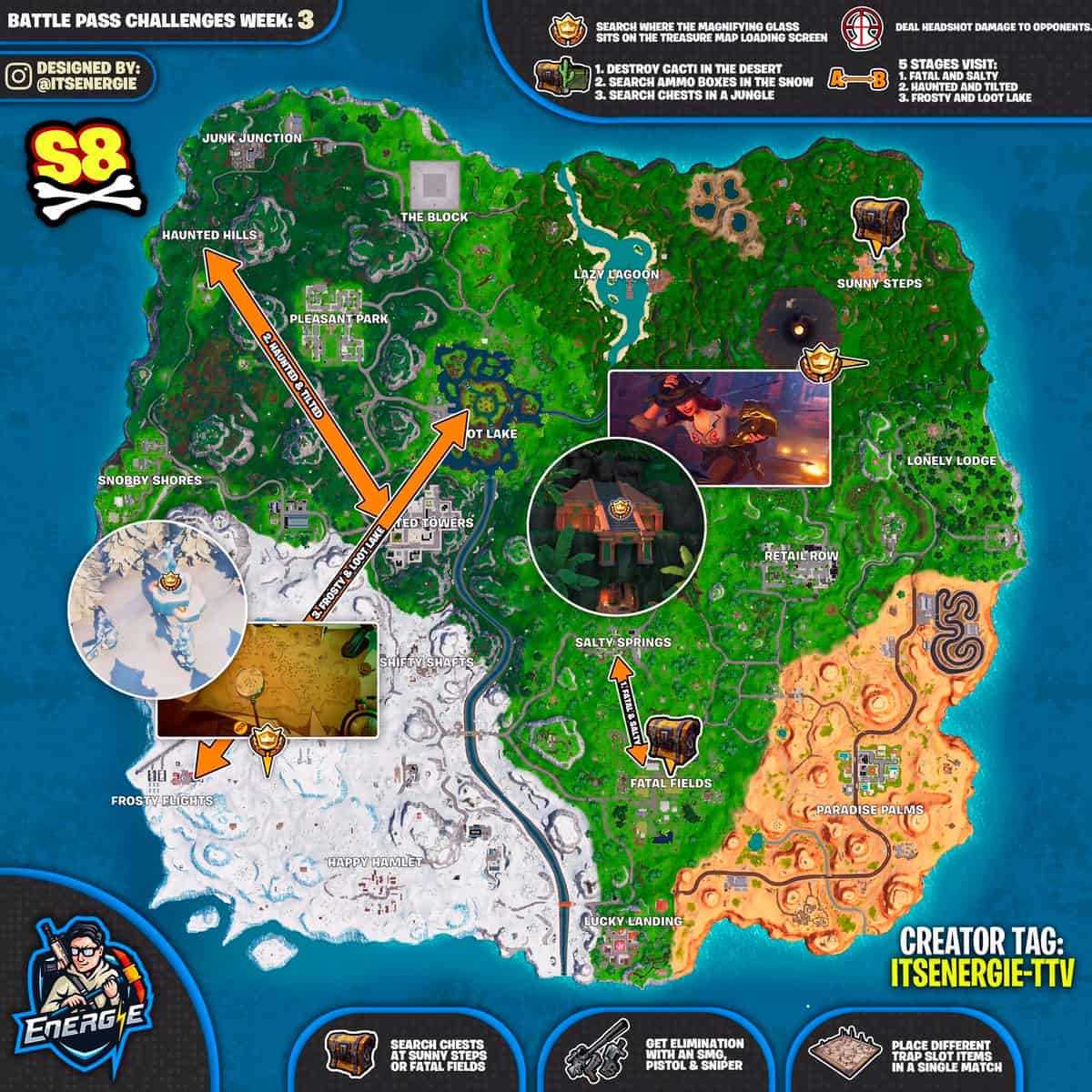 Весна уже почти окутала нас своим теплом, но Epic Games куда приятнее нас обрадовал выпустив испытания 3 недели Фортнайт 8 сезона на нашем сайте! Давайте же посмотрим, что вы должны выполнить, чтобы разработчики за вас порадовались?