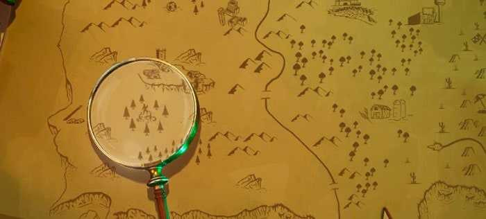- Найдите место, где находится лупа на экране загрузки «Карты сокровищ»;