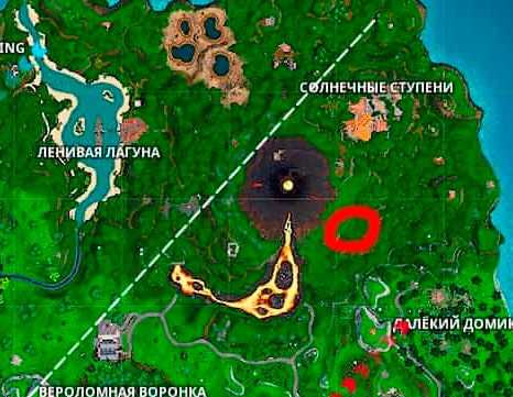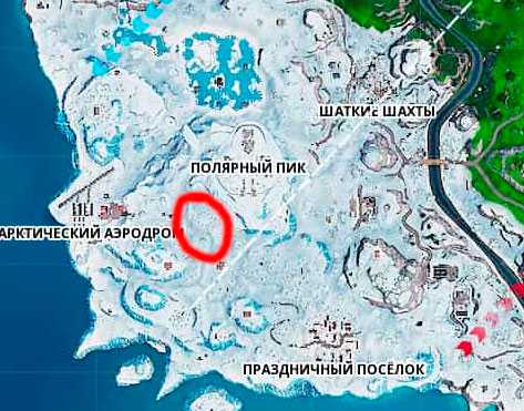 А вот это место непосредственно на самой карте Фортнайт. Расположено оно между Полярным пиком и Арктическим аэропортом.
