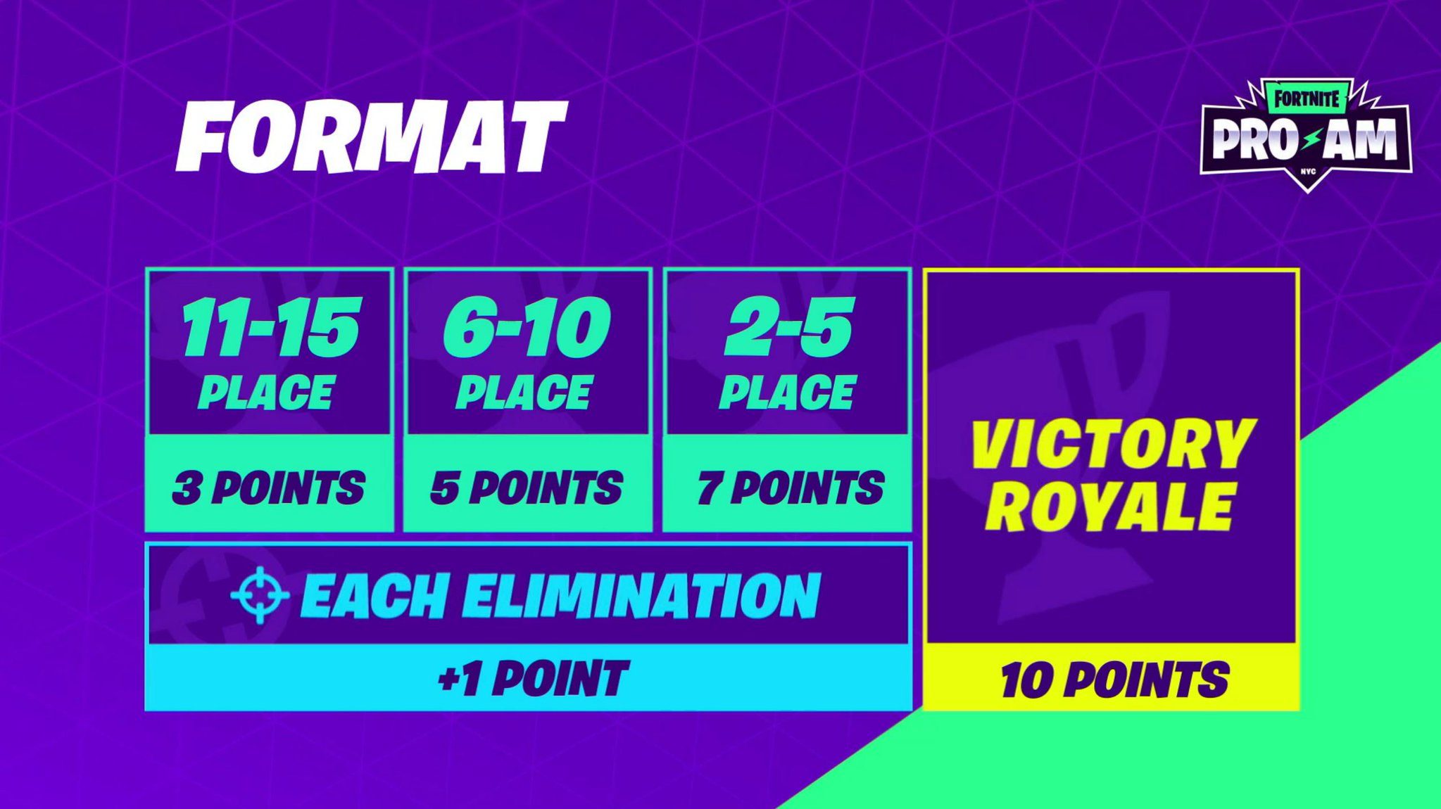 Формат соревнований был прост: команды соревновались в шести матчах, зарабатывали очки на выбывание. В одной игре можно было заработать следующей количество очков: